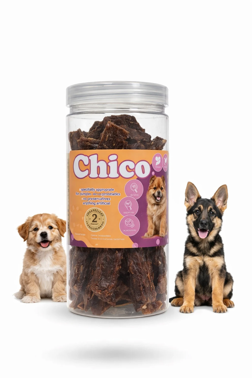 تشویقی چیکو طعم همبرگری گاو با الهام از طعم مورد علاقه سگها، اما با فرمولی کاملاً سالم و ارگانیک تولید شده است. این محصول علاوه بر ایجاد انگیزه و شادی، به تأمین ویتامینها و تقویت دندانها کمک میکند.