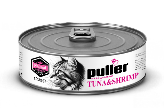 کنسرو Puller Natural Super Premium Fish & Shrimp Pâté با استفاده از ماهی باکیفیت و میگوی طبیعی تهیه شده و با فرمولاسیون نچرال، تغذیهای سالم و نزدیک به رژیم طبیعی گربهها را فراهم میکند.