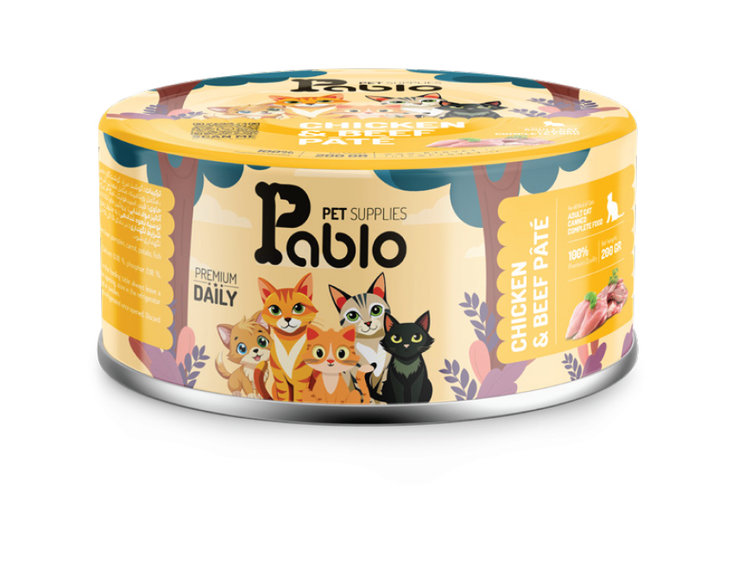 کنسرو پریمیوم پابلو طعم کنسرو مرغ وگوشت (گربه بالغ)